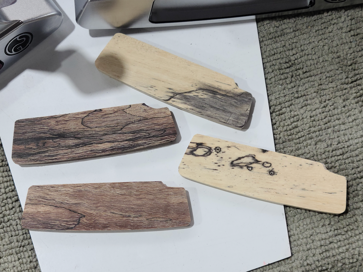 Four wooden inserts with unique grain patterns for a putter.